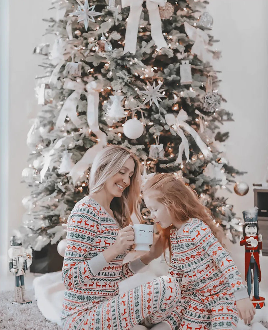 The Lunoir Snowfall embodies the serene beauty of winter’s quietest moments. Crafted from a soft cotton-polyester blend, this festive pajama set offers gentle warmth and light breathability for the whole family. Its delicate holiday pattern evokes the calm of falling snow, while the relaxed fit and smooth texture ensure effortless comfort. Designed for nights of laughter and calm mornings — where every flake feels like home.